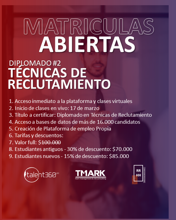 ✅ Acceso inmediato a la plataforma y clases virtuales 📅 Inicio de clases en vivo: 17 de marzo 🎓 Título a certificar: Diplomado en Técnicas de Reclutamiento 📉 Acceso a bases de datos de más de 16.000 candidatos 💻 Creación de Plataforma de empleo Propia 💰 Tarifas y descuentos: 🔹 Valor full: $100.000 🔹 […]
